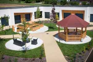 Nov center za osebe z demenco je povezan z okoli dve desetletji starim gornjegrajskim domom za starejše. Pritlični objekt obsega 2300 kvadratnih metrov, od tega 1300 kvadratnih metrov zelenih površin.